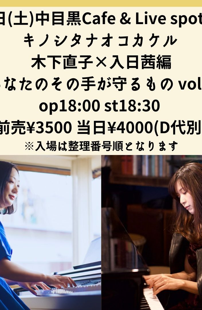 home Schedule live schedule キノシタナオコカケル木下直子×入日茜編 キノシタナオコカケル木下直子×入日茜編 2026.05.16 live schedule 2026年5月16日(土)出演:木下直子/入日茜開場18:00 開演18:30予約3,500円 当日4,000円(別途ドリンク)*整理番号順入場*ご予約は各アーティストまでお願いします Tweet Share +1 Hatena Pocket RSS feedly Pin it